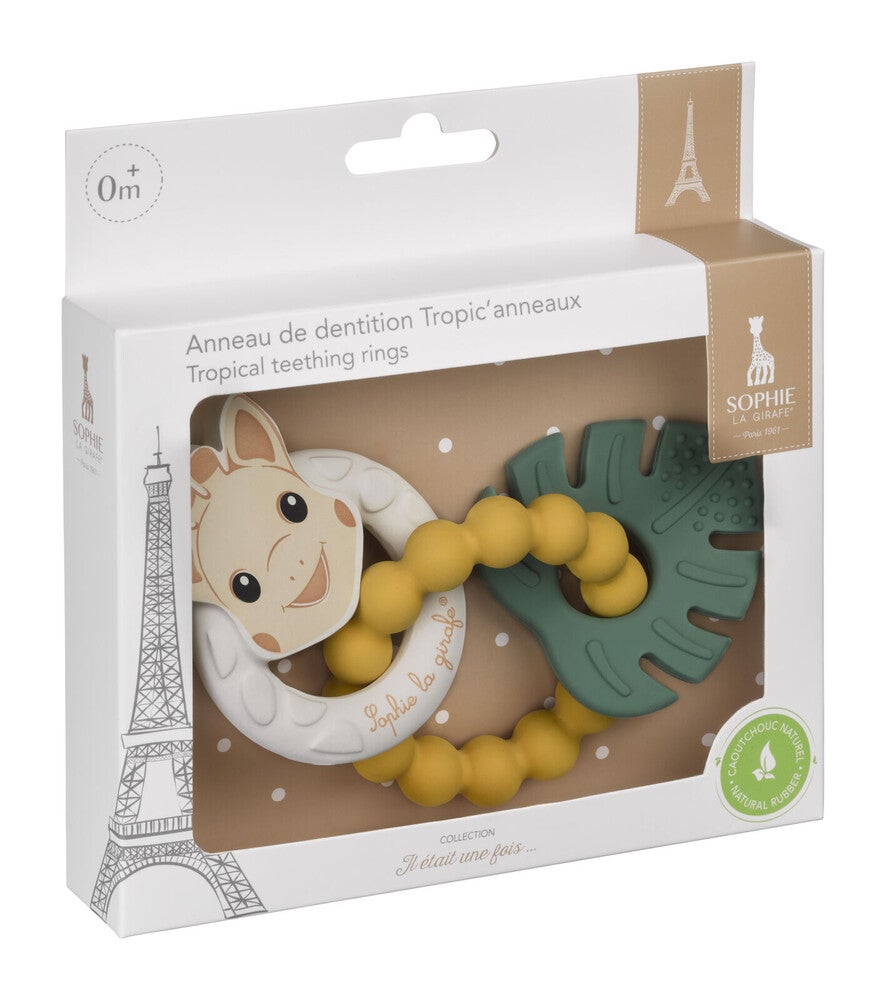 Sophie La Girafe sarjan luonnonkuminen purulelu, jossa erilaisia ulottovuuksia ja nystyröitä.